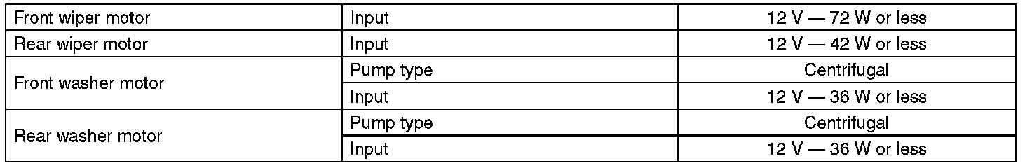 Wiper and Washer Systems: Specifications