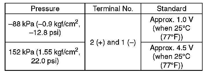 NOTE: When vacuum occurs at the pressure port of manifold absolute pressure sensor, the voltage will drop from the value as in step 3). When positive pressure occurs, on the other hand, the voltage will rise.