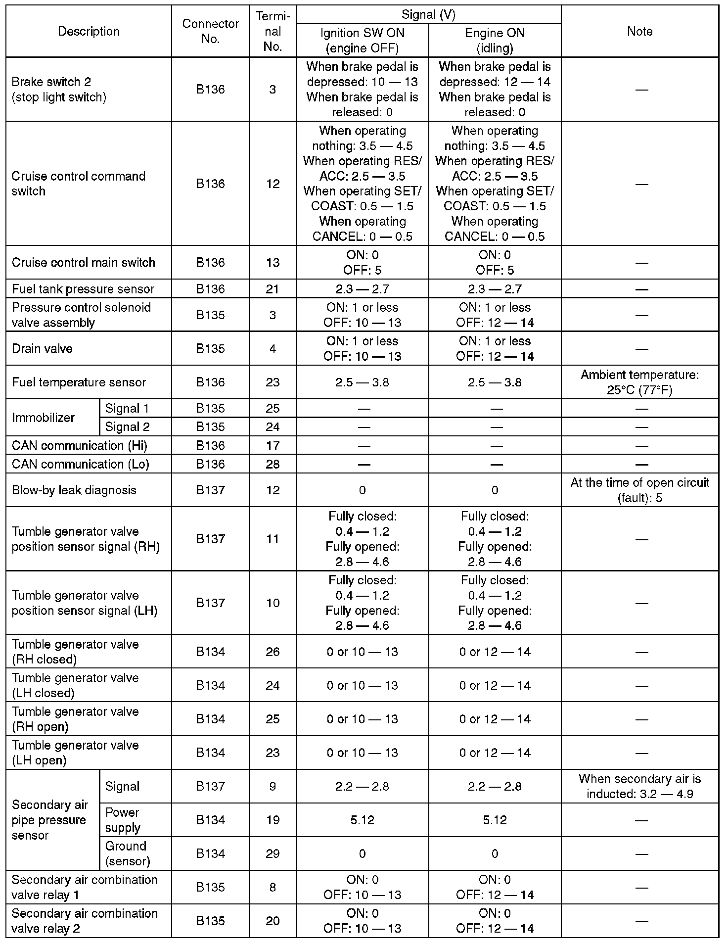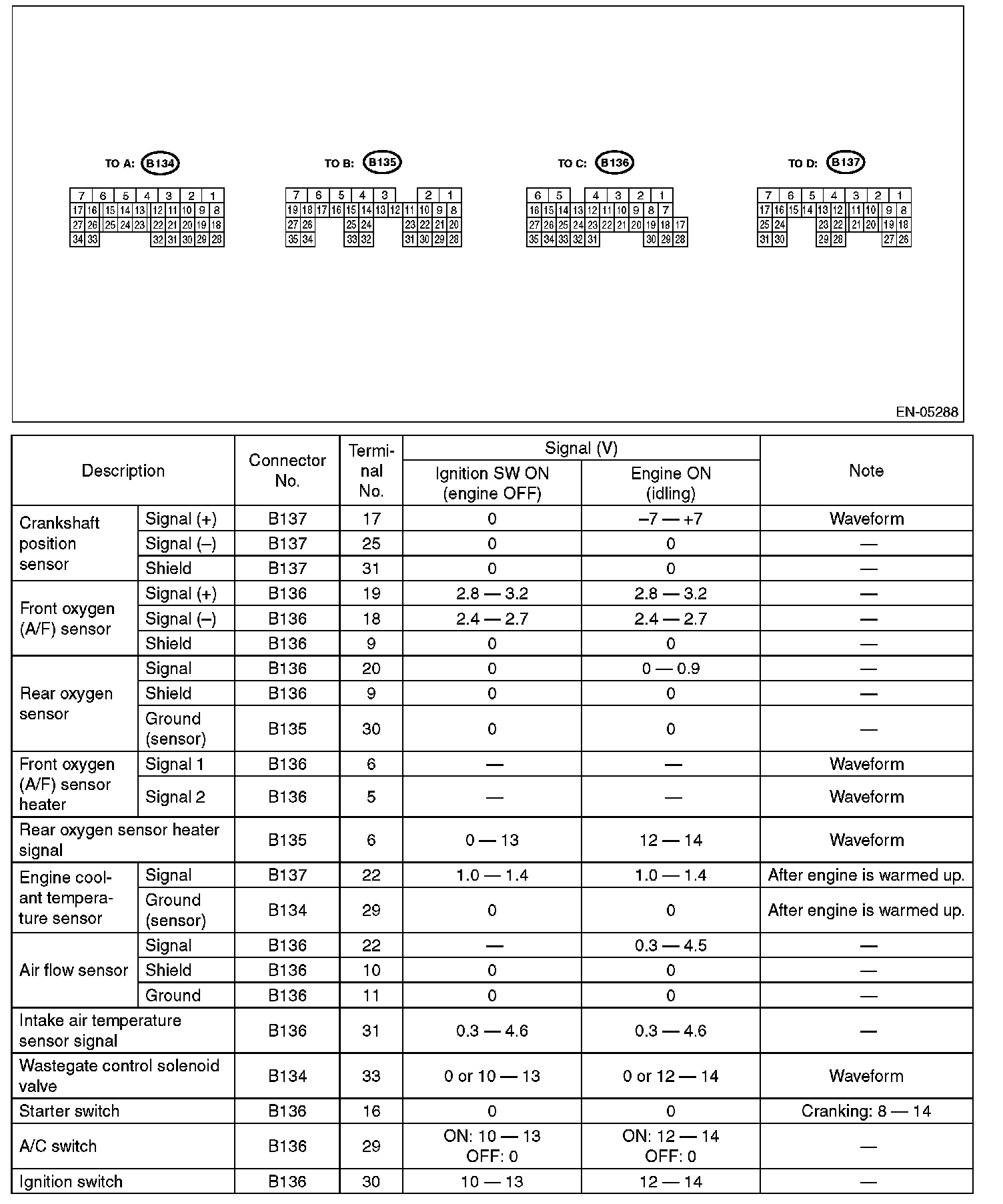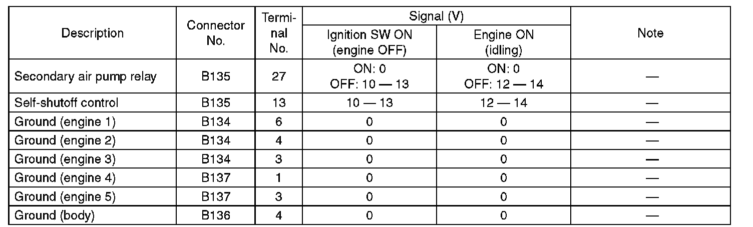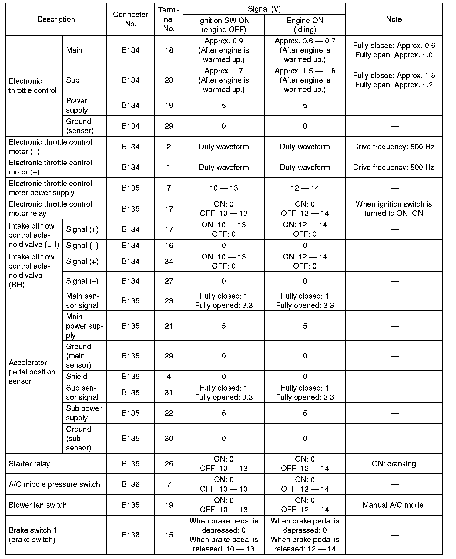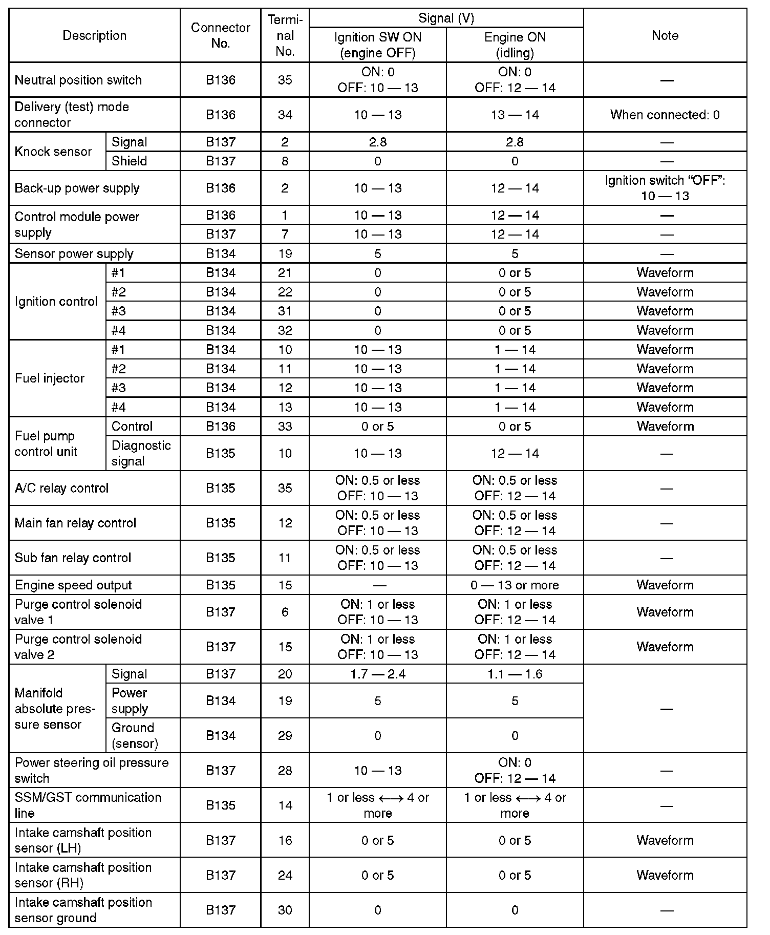 ENGINE CONTROL MODULE (ECM) I/O SIGNALELECTRICAL SPECIFICATION