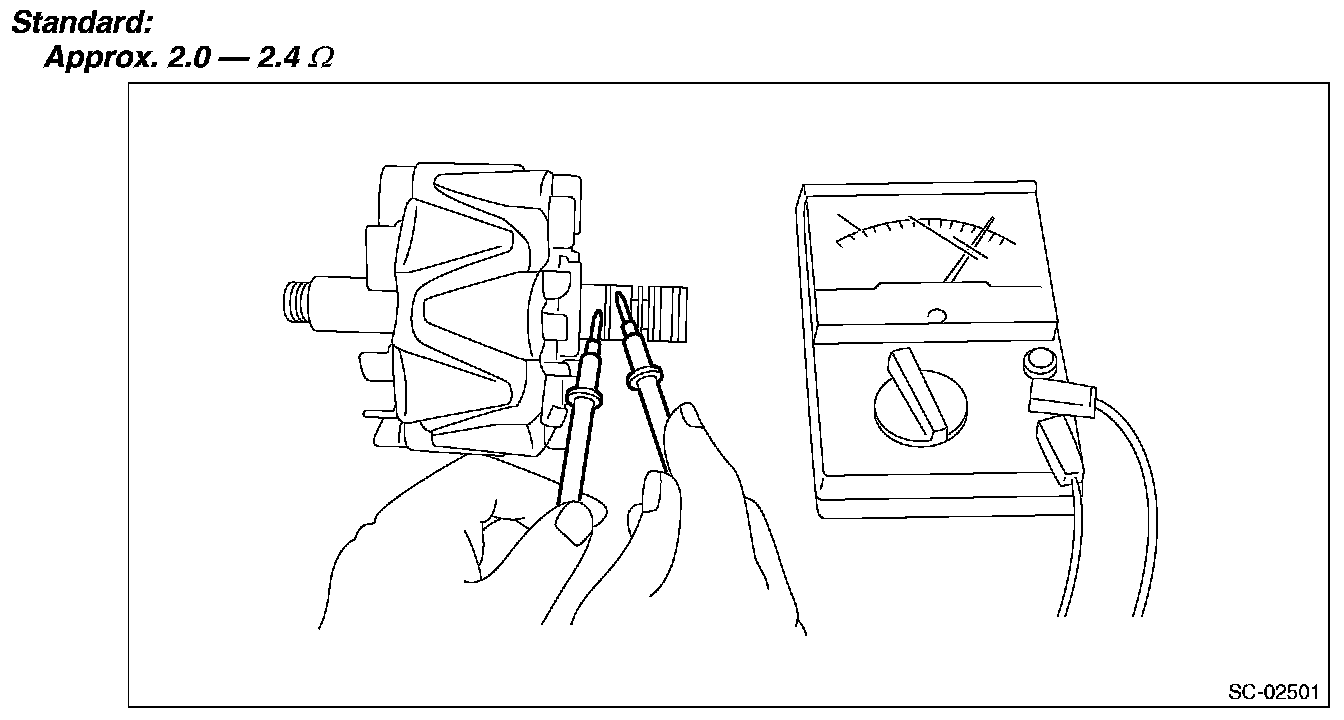 Using a circuit tester, check the resistance between slip rings. If the resistance is not within the standard, replace the rotor.