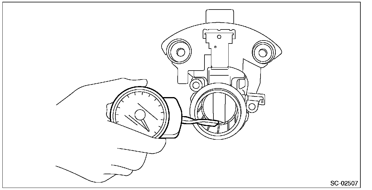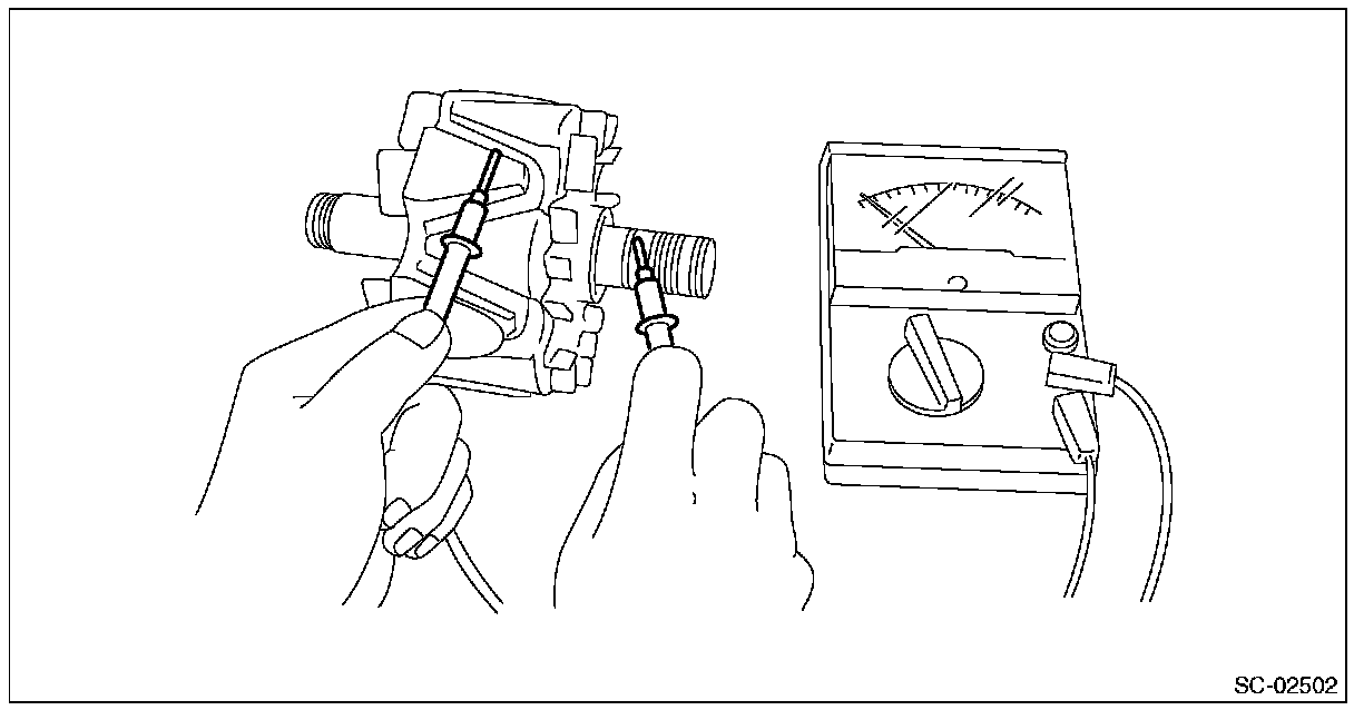 CAUTION: There is the possibility of damaging the diodes if a mega-tester (used to measure high voltages) or a similar measuring instrument is used. Never use a mega tester or equivalent for this test.