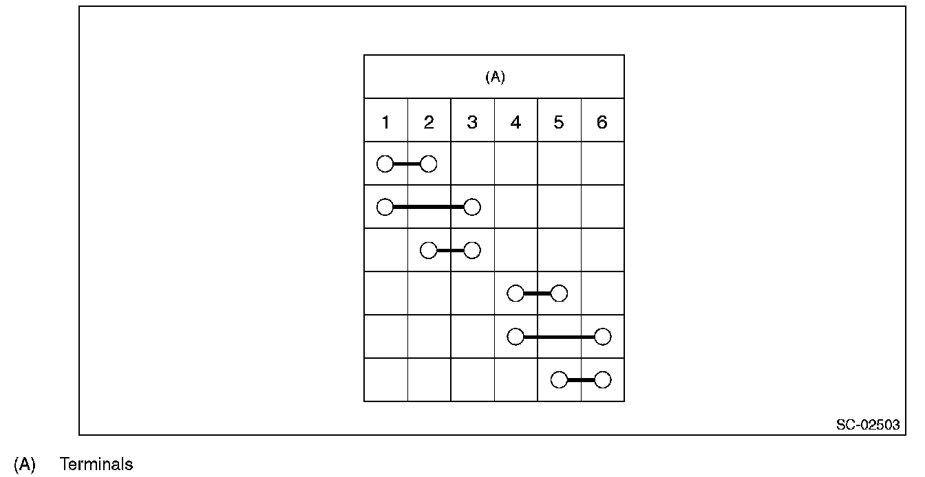 Inspect the continuity between the stator coil terminals. If continuity is not as shown in the table, replace the stator coil.