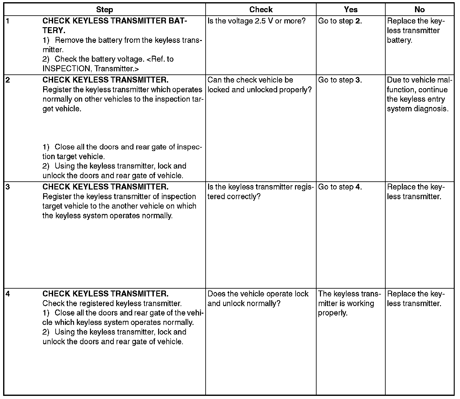 CHECK KEYLESS TRANSMITTER BATTERY AND FUNCTIONS