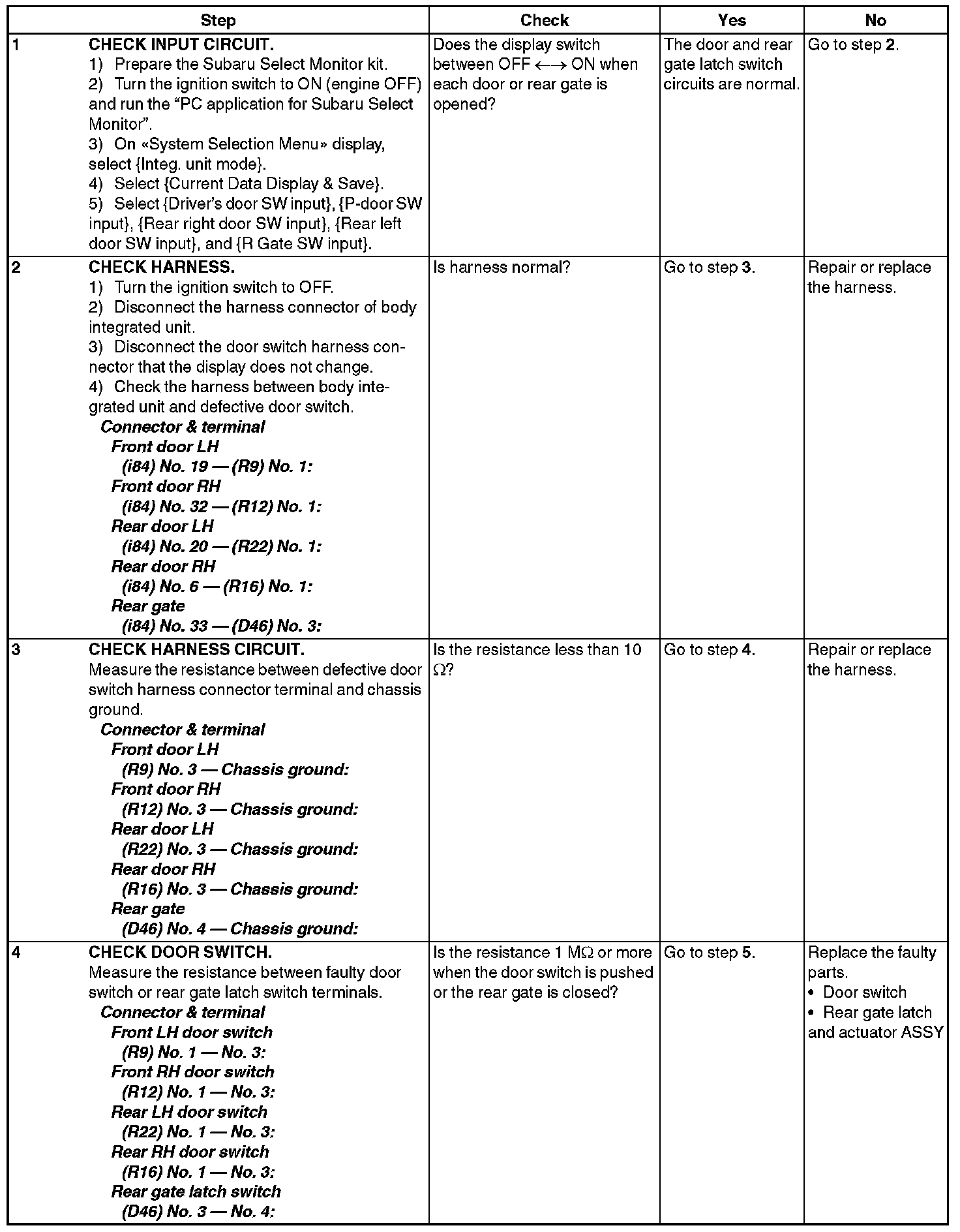 CHECK DOOR SWITCH