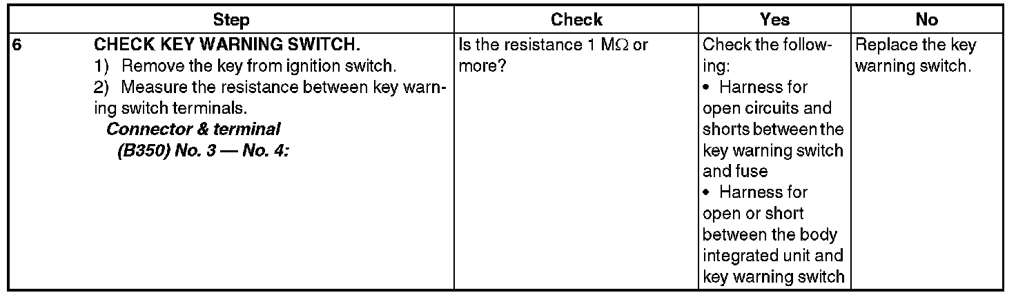 CHECK KEY WARNING SWITCH