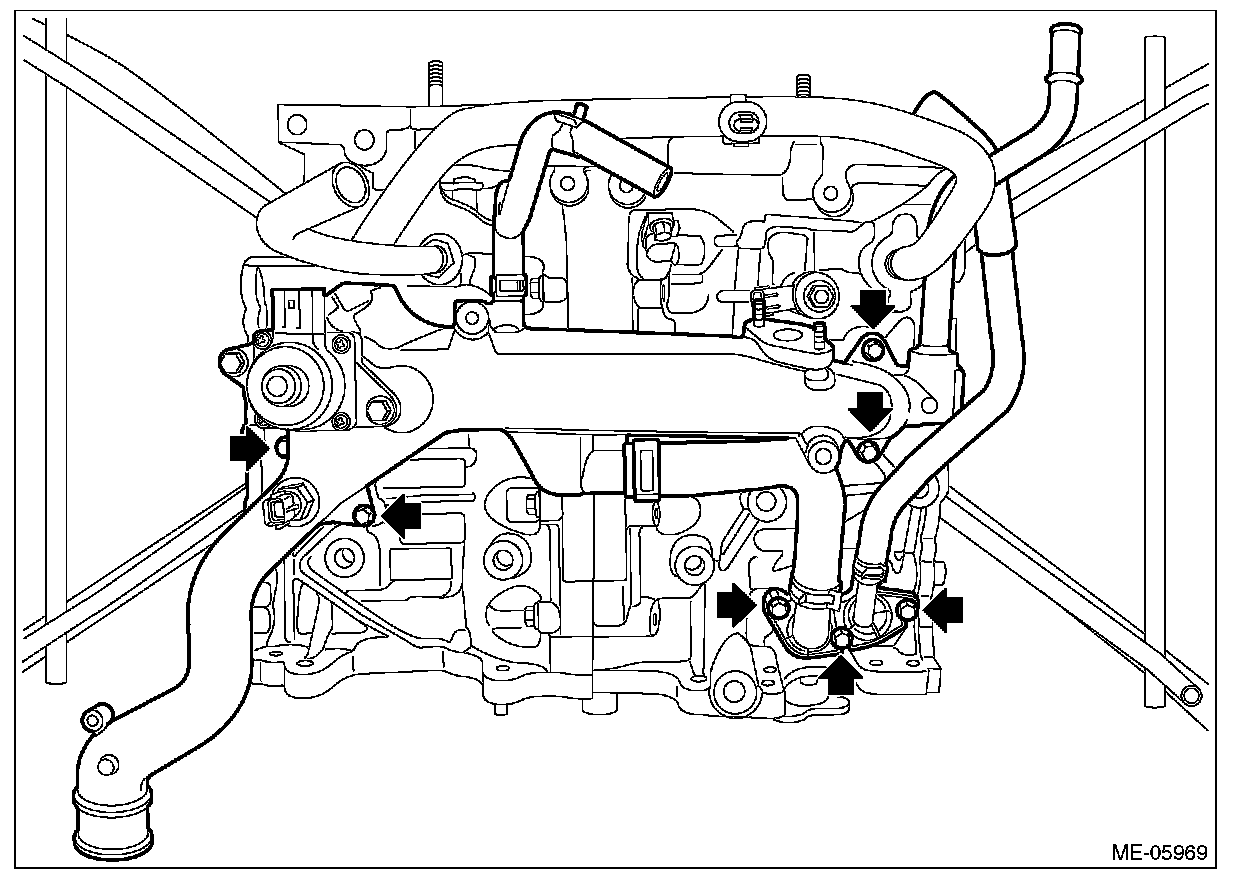 20) Remove the thermostat cover from oil pan upper, and then remove the thermostat.