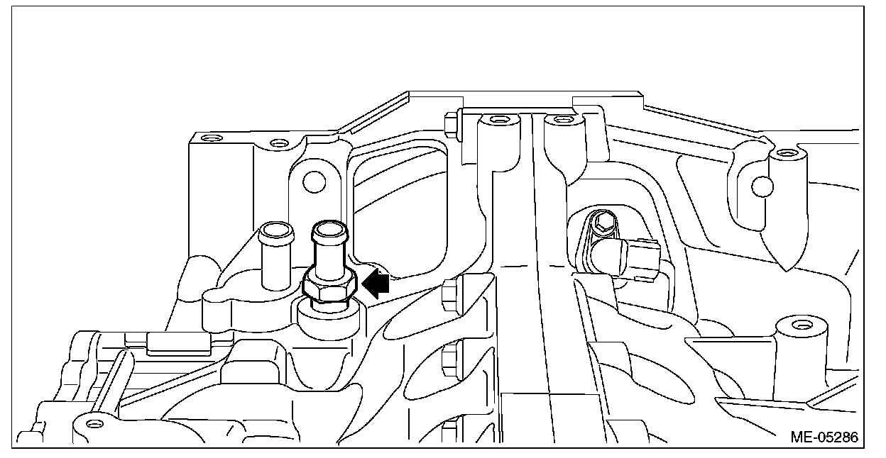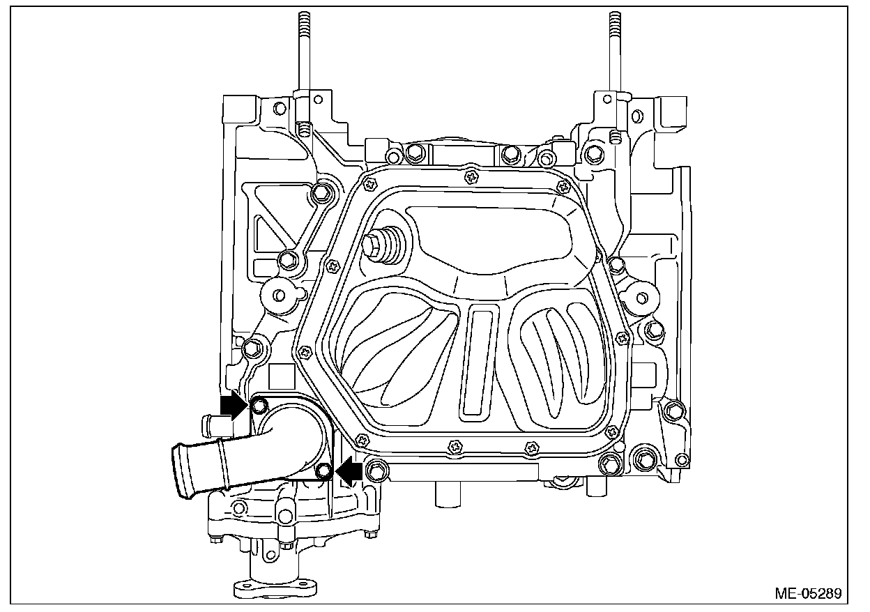 10) Remove the bolts securing the water pipe assembly and PCV connector to the cylinder block, and remove the water pipe assembly and PCV connector as a set from cylinder block.