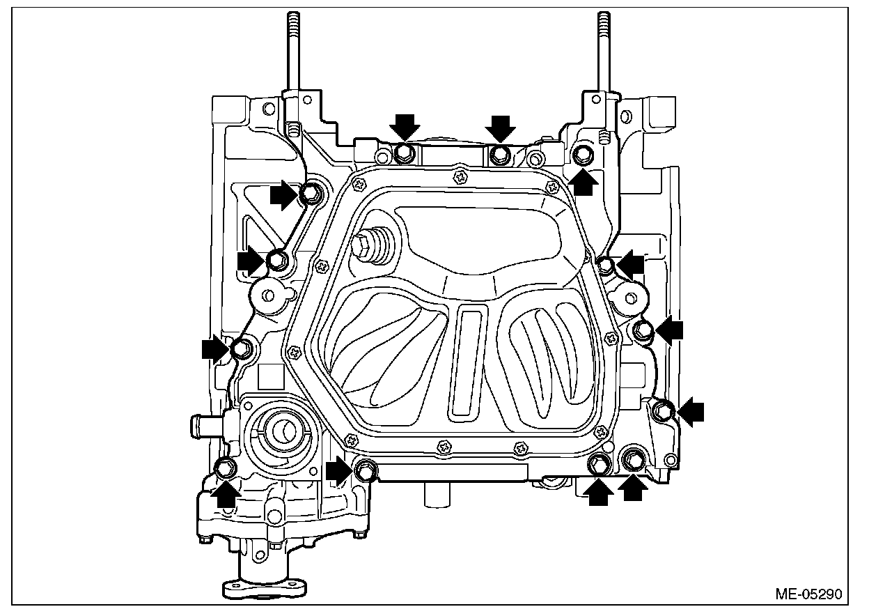 (2) Loosen the cylinder block mounting bolts in numerical order as shown in the figure, and separate the cylinder block RH and LH.