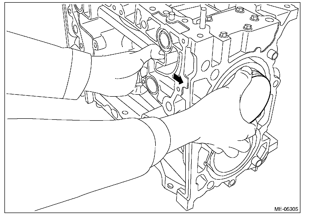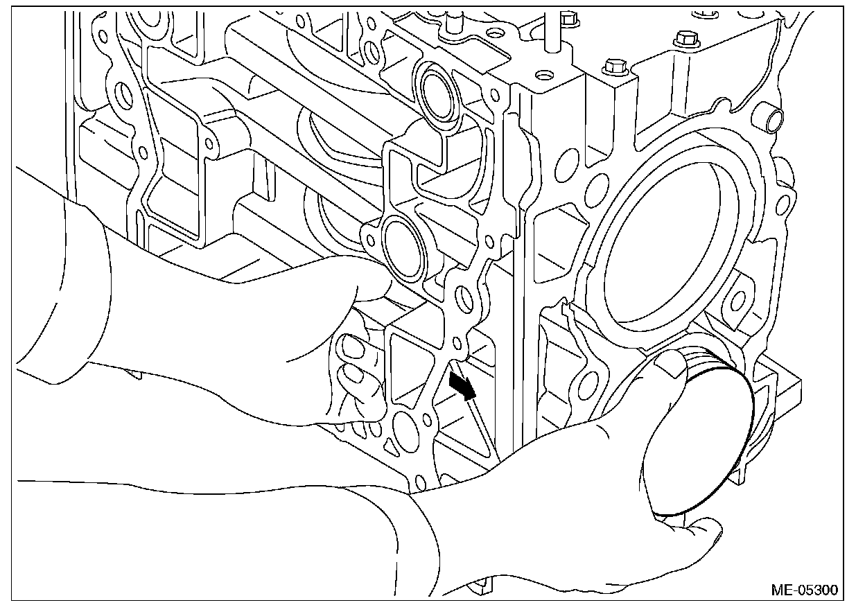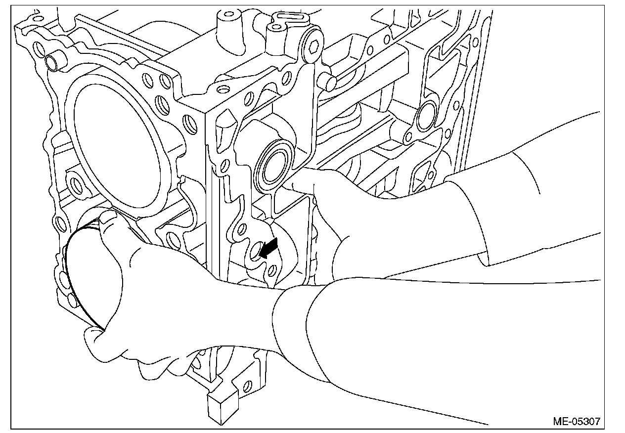 ^ Be careful not to scratch the mating surface of cylinder block during work.