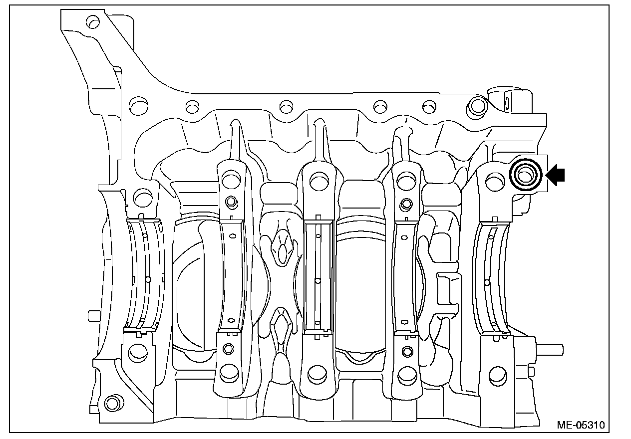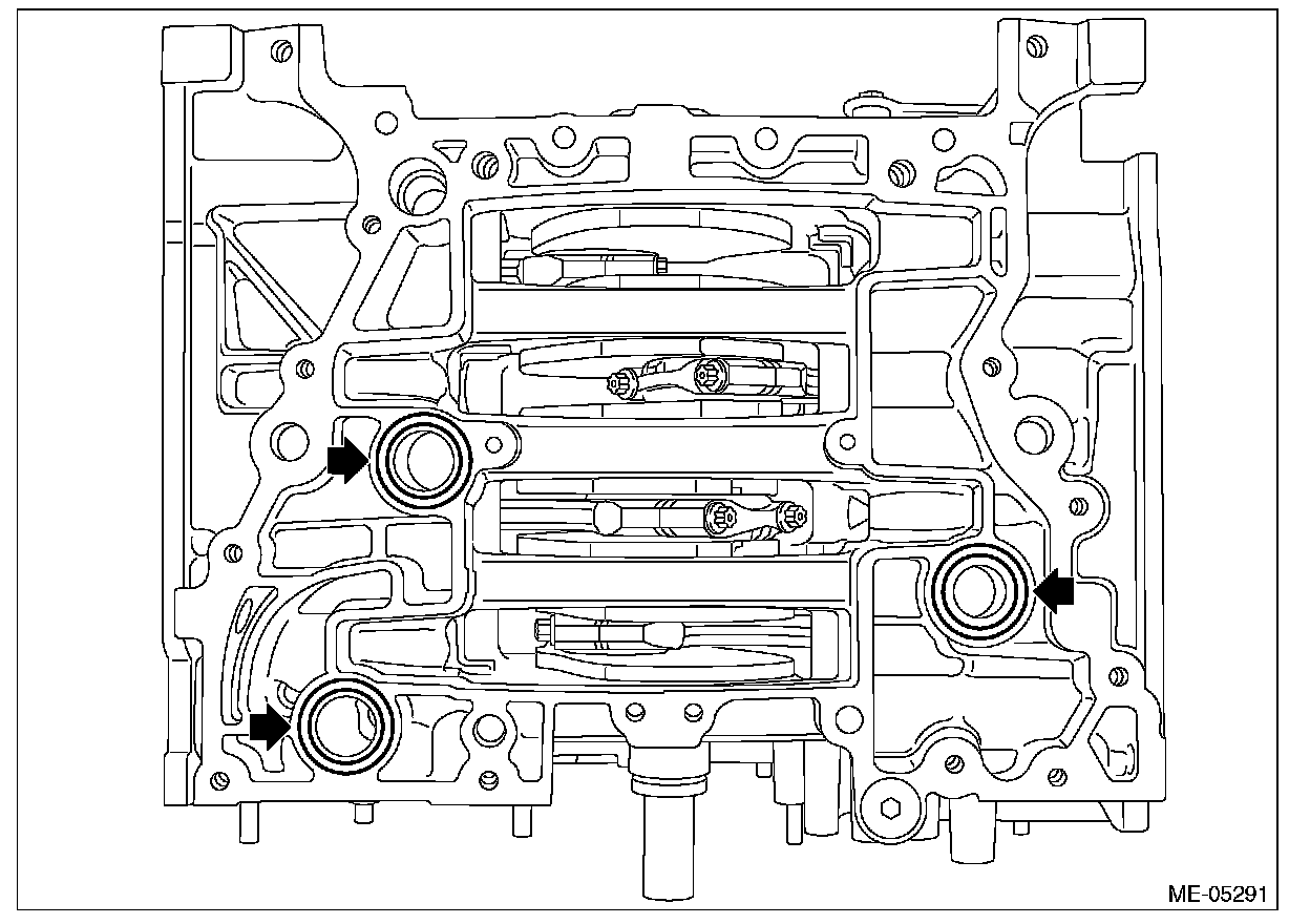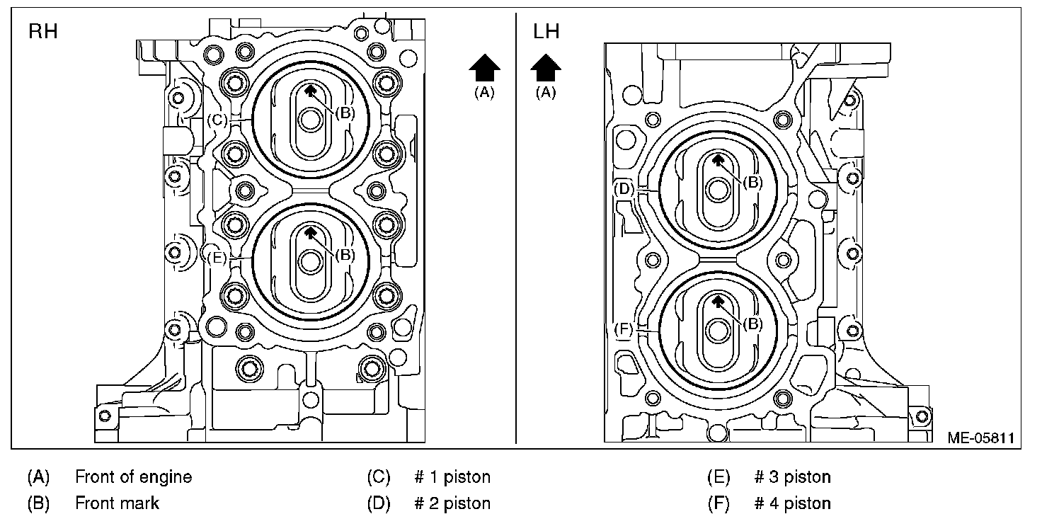 ^ Be careful not to scratch the mating surface of cylinder block during work.