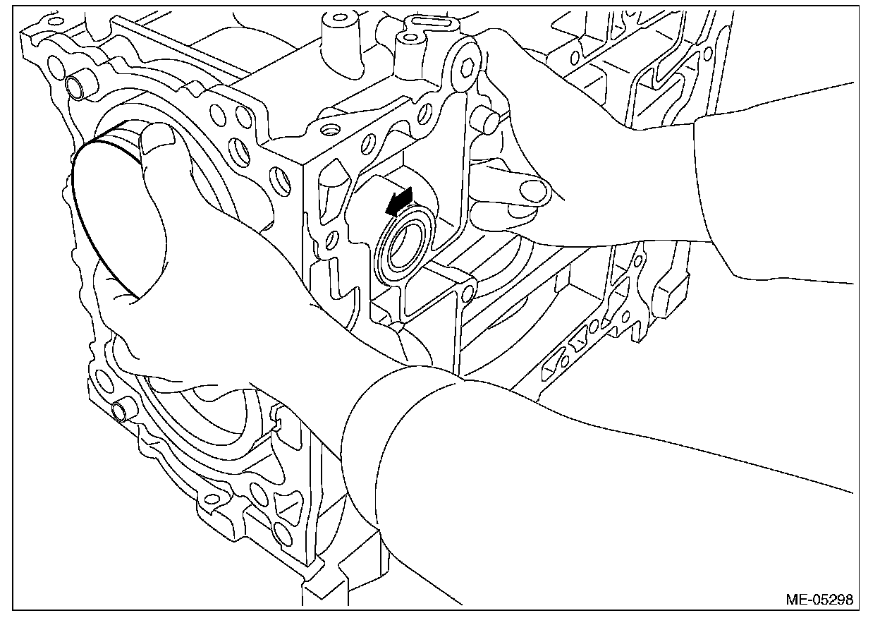 30) Remove the crankshaft from cylinder block LH, and remove the rear oil seal.