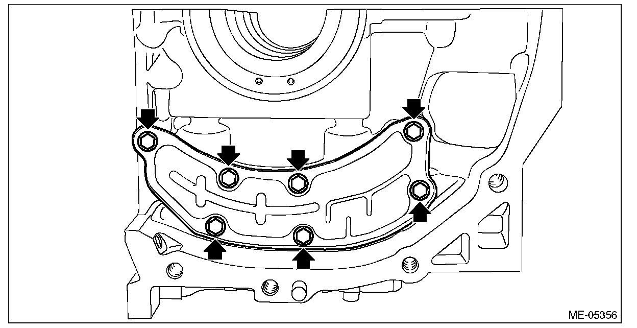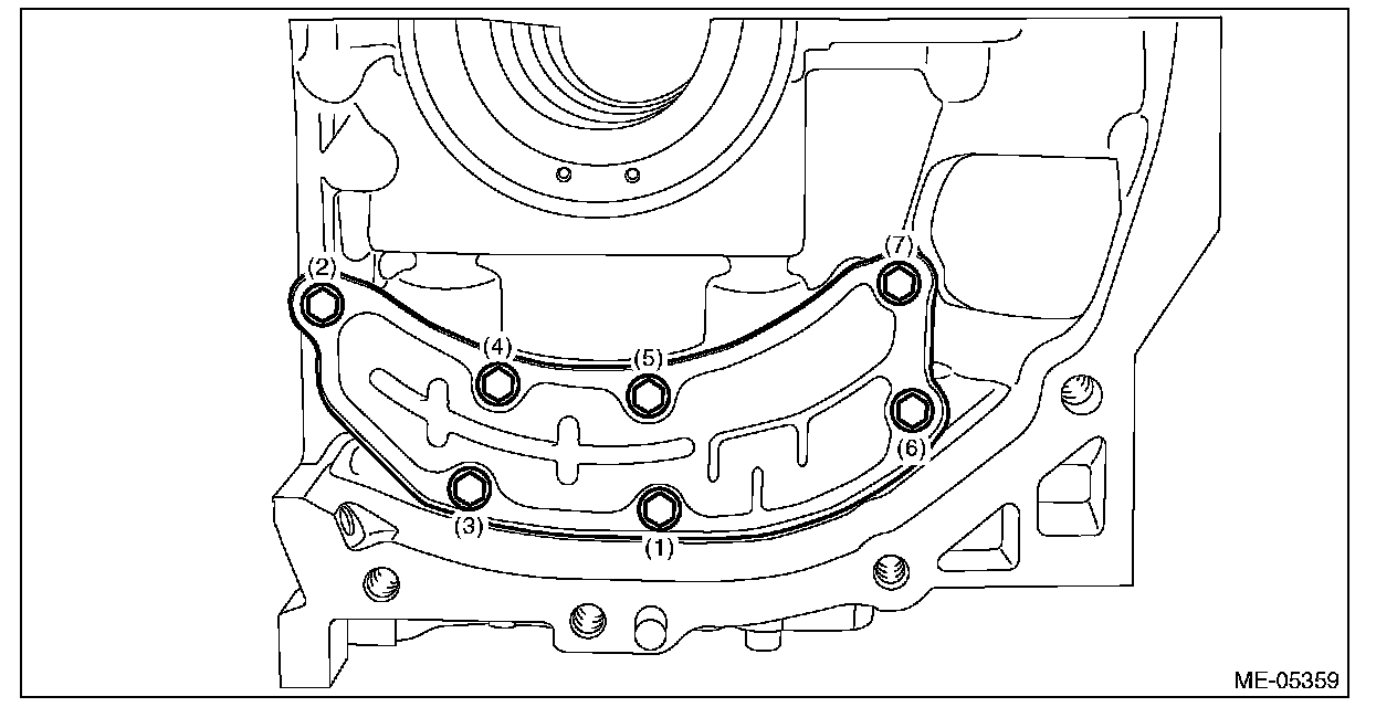 (2) Install the oil separator cover to the cylinder block RH, and tighten the oil separator cover bolts in numerical order as shown in the figure.