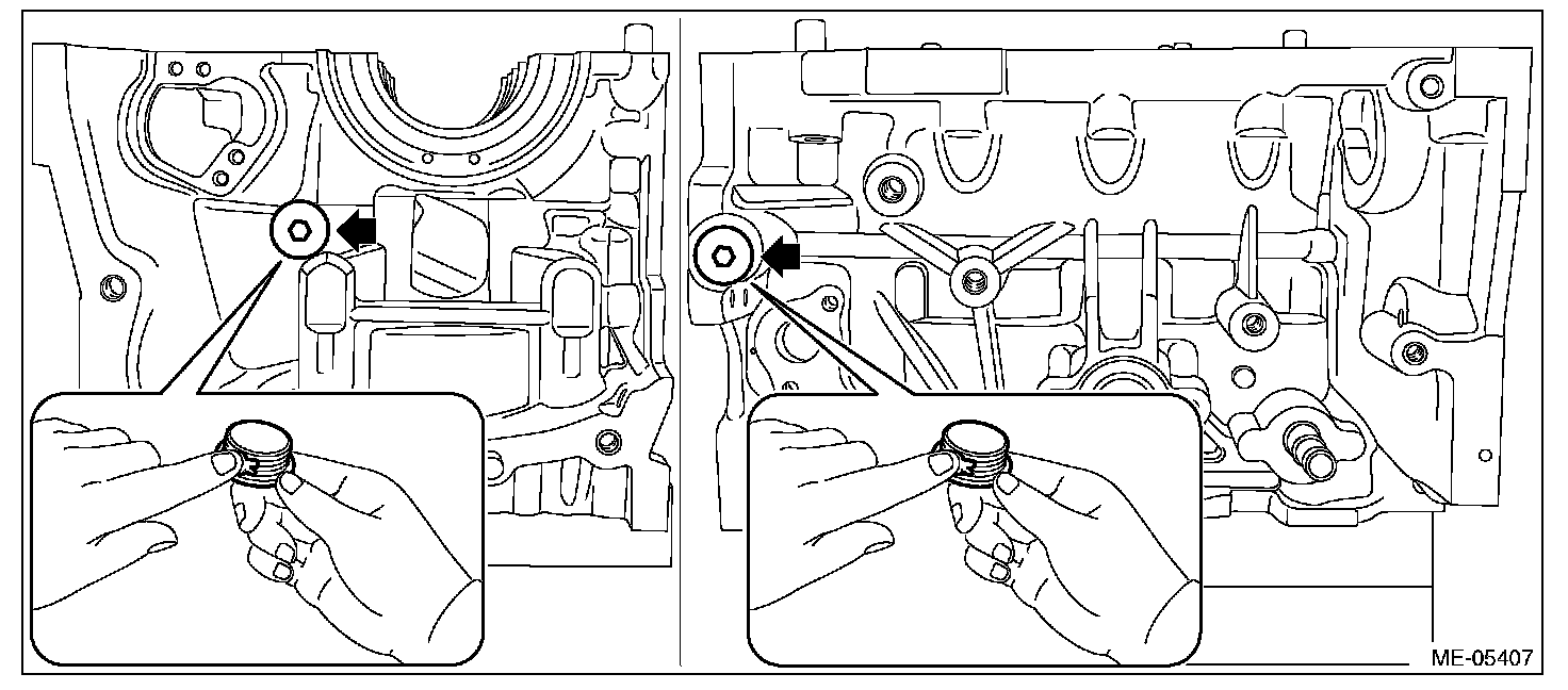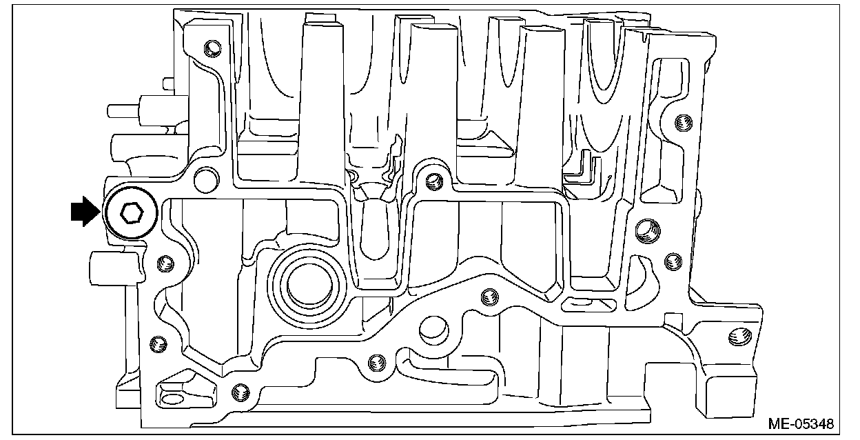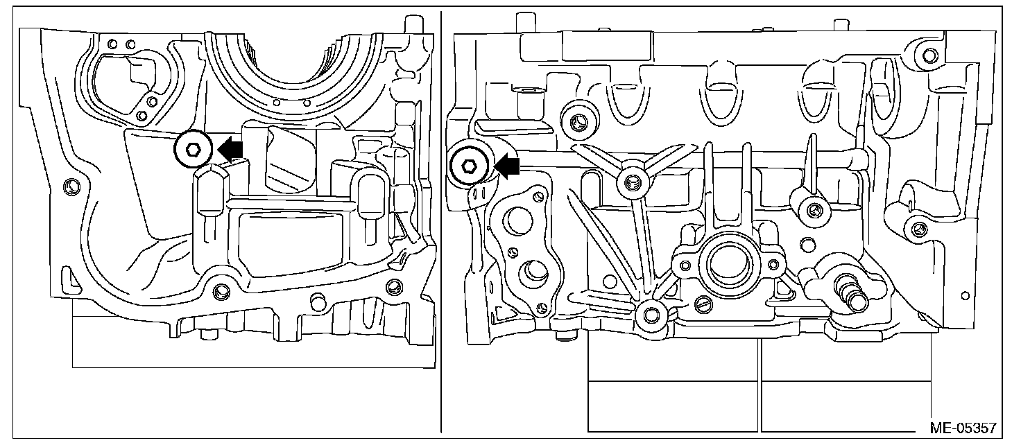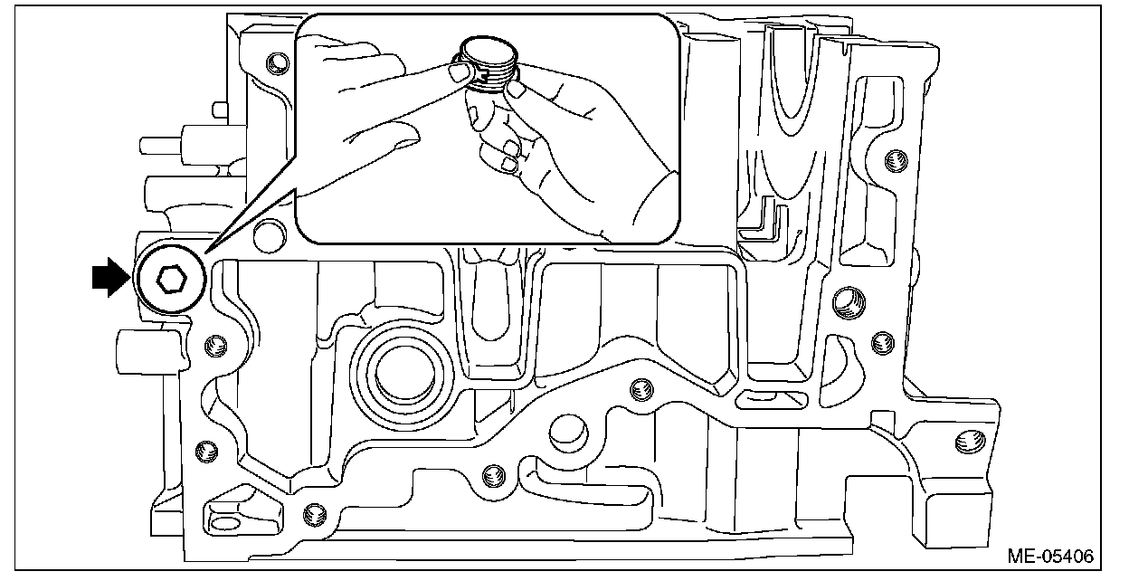 3) Apply liquid gasket to the threaded portion of the main gallery plug, and install the main gallery plug to the cylinder block LH.
