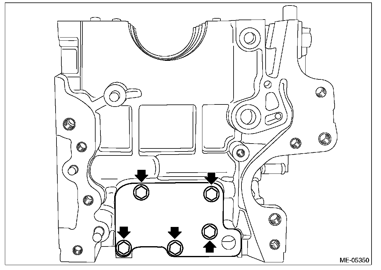 ^ Before applying liquid gasket, degrease the old liquid gasket seal surface of cylinder block RH.