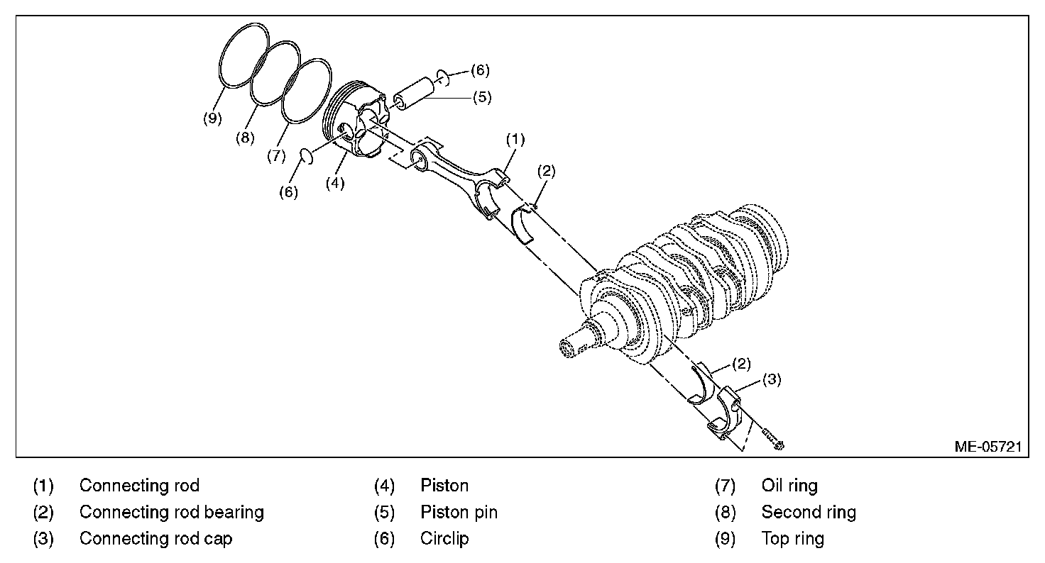 4) Remove the piston pin from piston, and remove the connecting rod from piston.