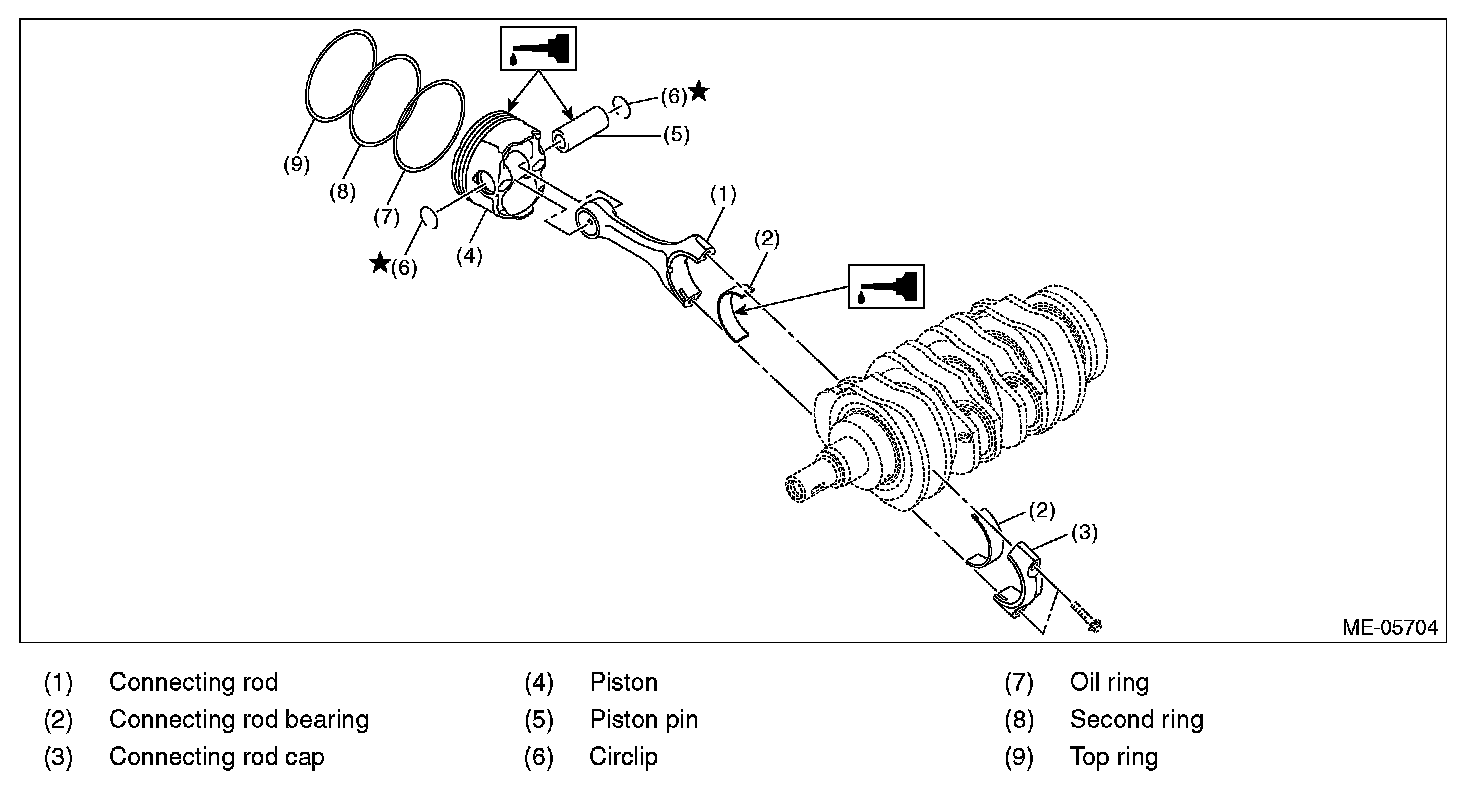 1) Remove the connecting rod bearing from connecting rod and connecting rod cap.