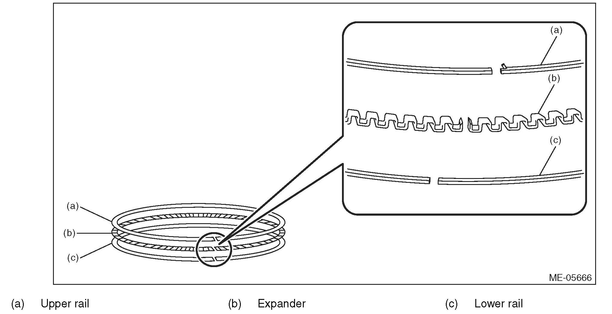 2) Remove the piston rings using piston ring expander, and remove the oil ring by hand.