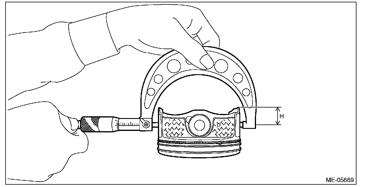 (1) Using a caliper gauge, measure the inner diameter of piston pin hole.