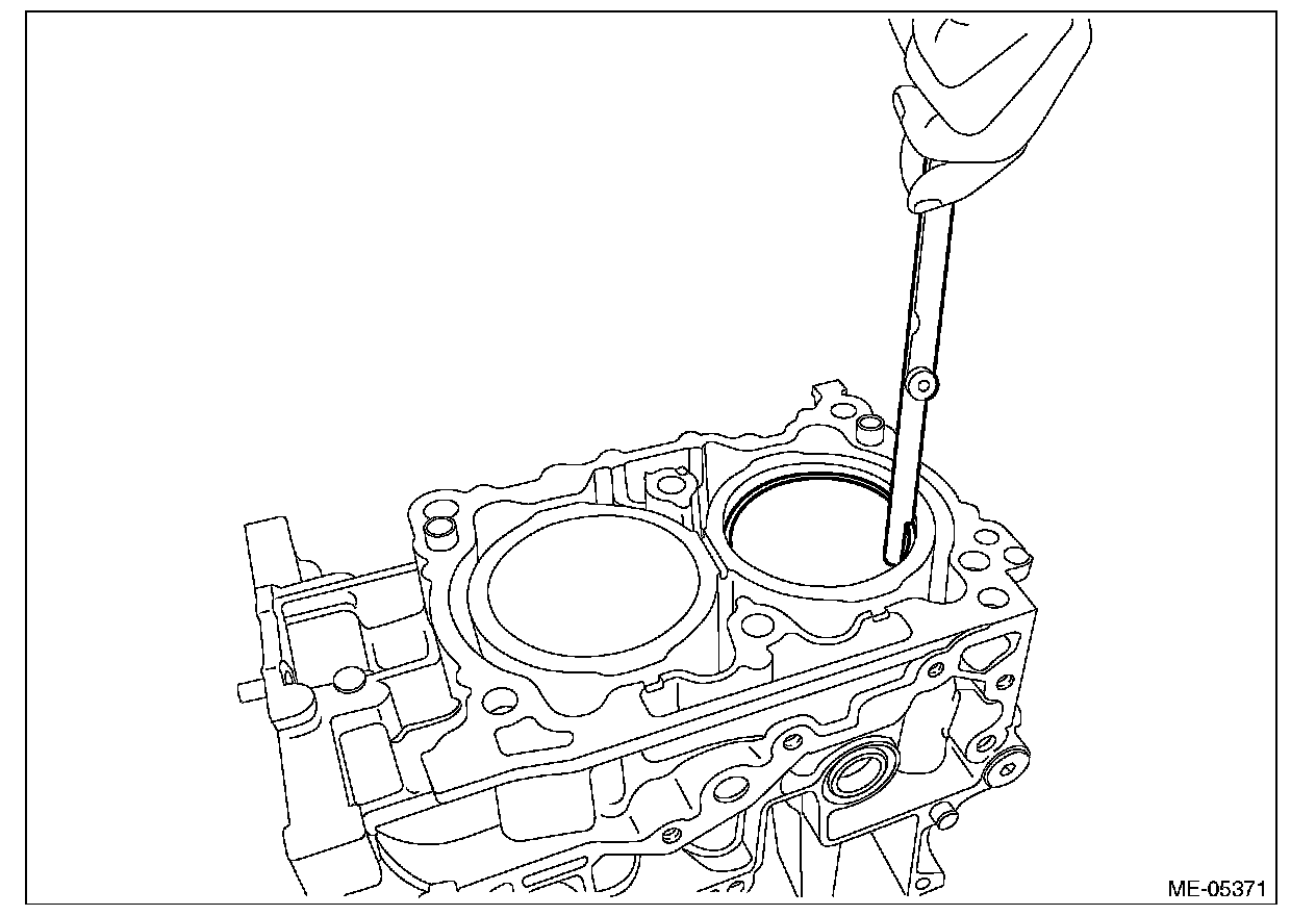 ^ Before measuring the clearance, clean the piston ring groove and piston ring.