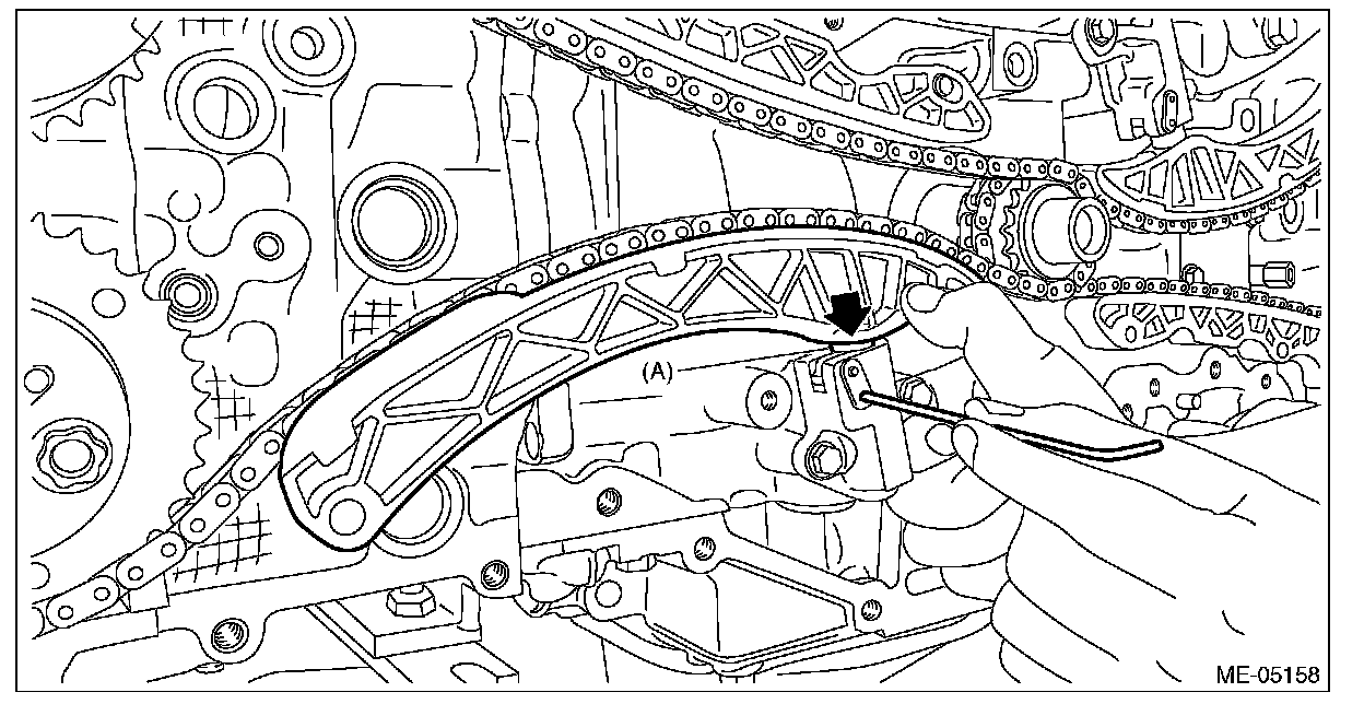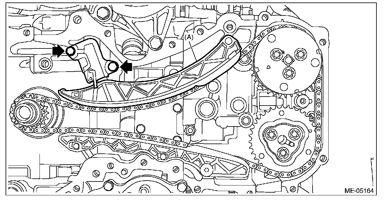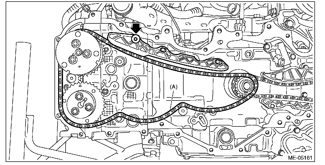6) Remove the chain guide LH, and remove the timing chain LH (A).