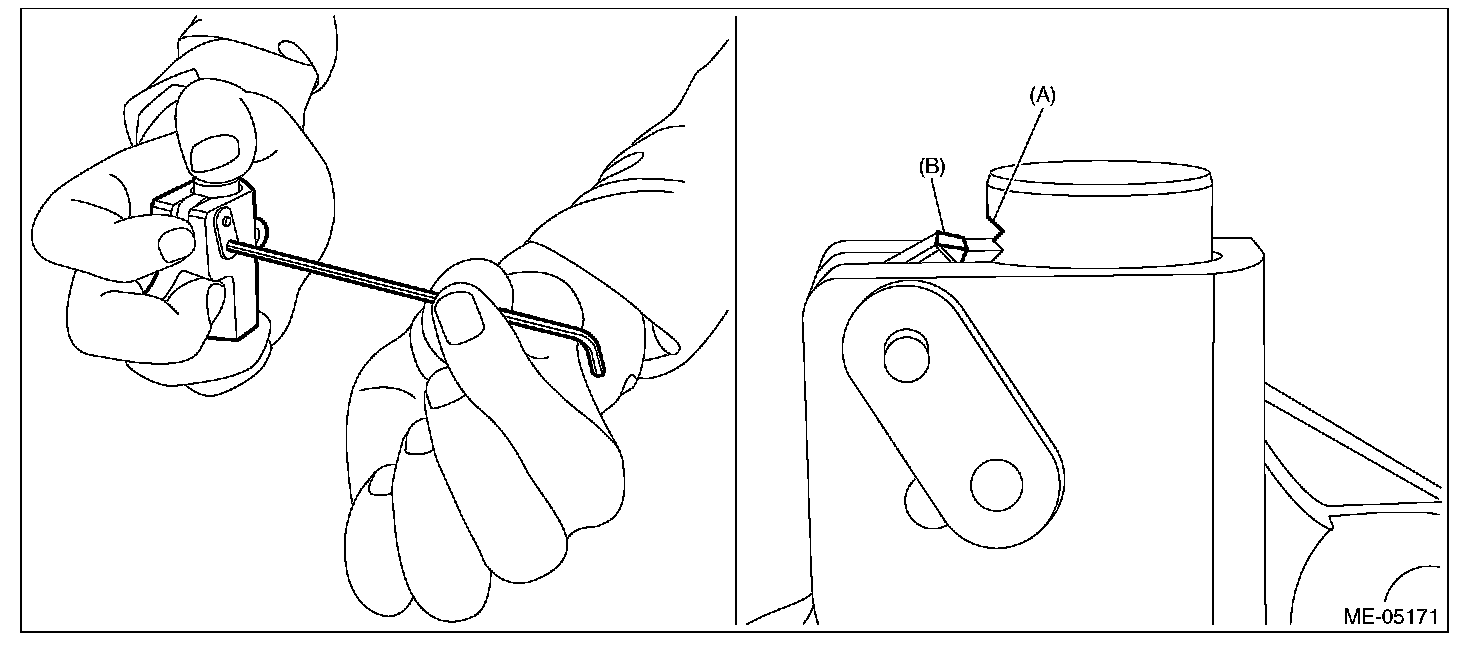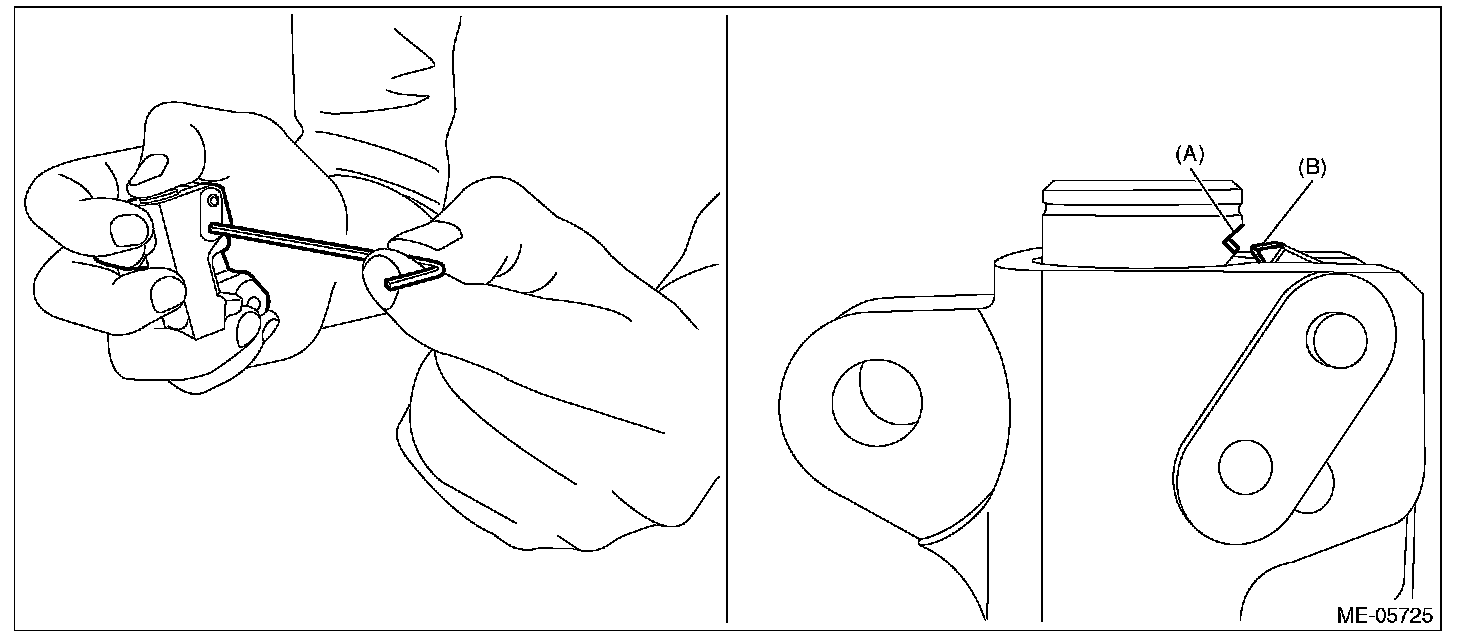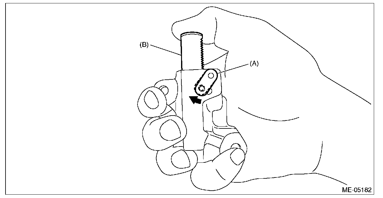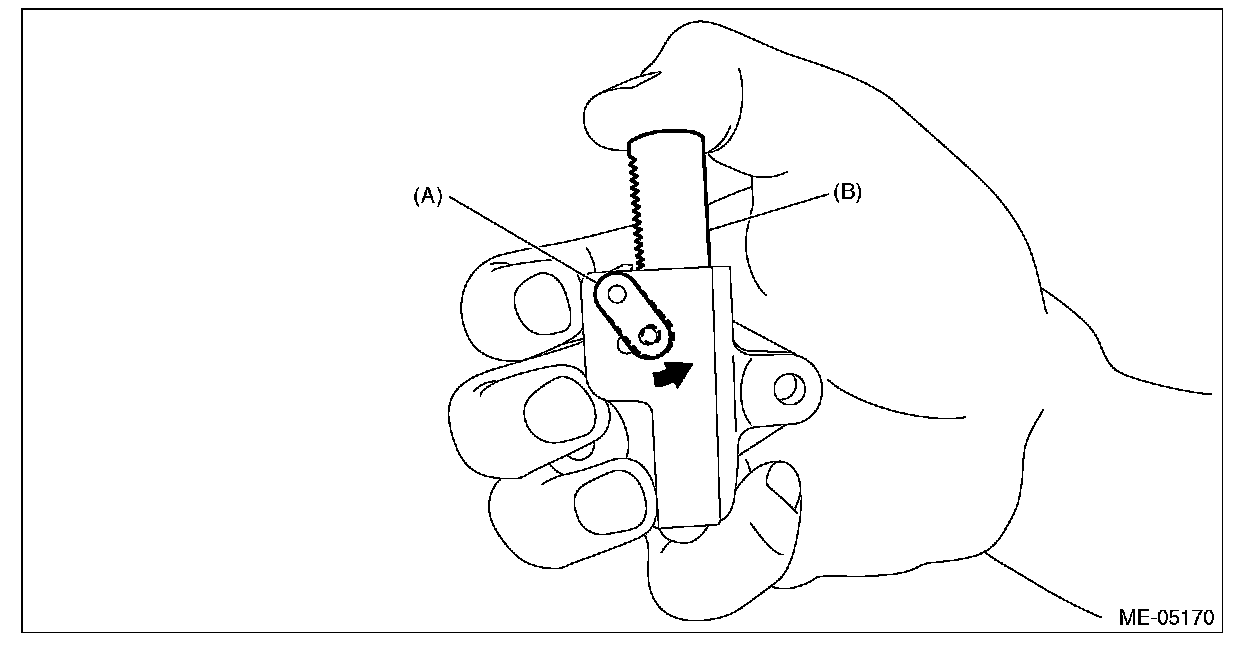 (1) Move the link plate (A) in the direction of arrow to press in the plunger (B).