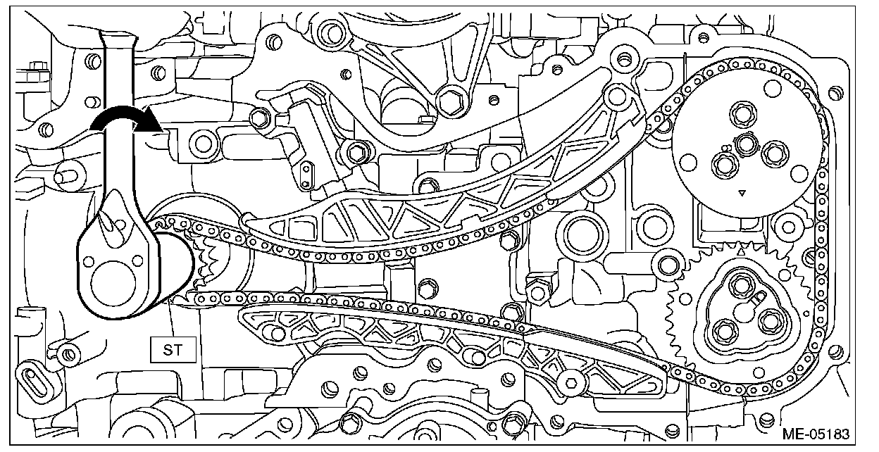 8) Using the ST, turn the crankshaft clockwise, and make sure that there are no abnormal conditions.