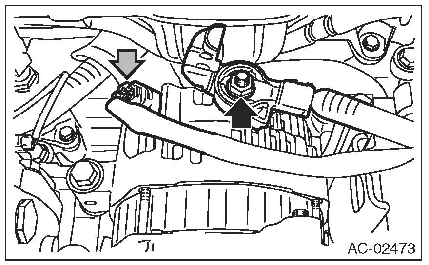9. Remove the bolt and remove the low-pressure hose and high-pressure hose.