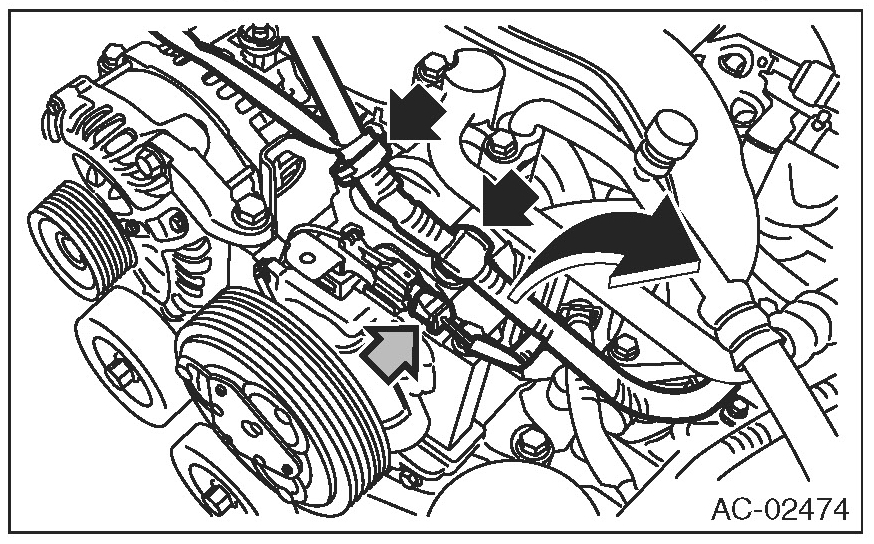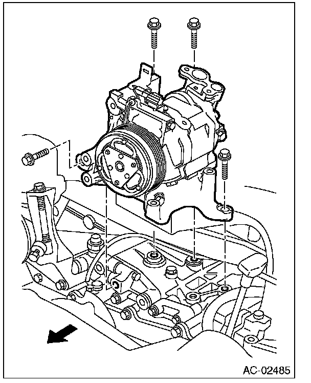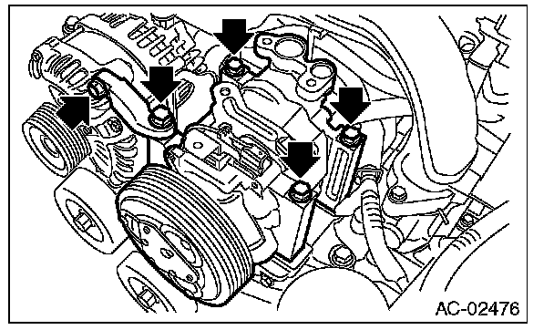 NOTE: Since the compressor cannot be removed by itself, remove with the compressor bracket as a unit.