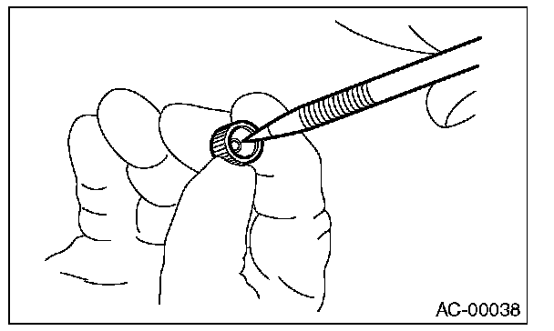 - Check the compressor shaft seal at the area near the center of compressor clutch pulley.