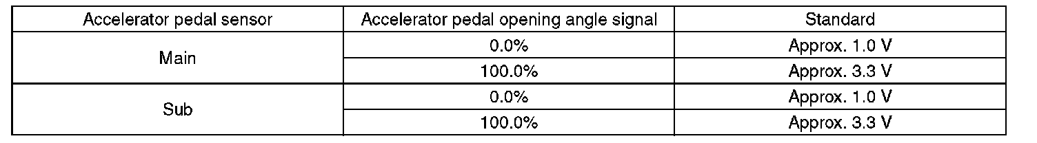 2. Read the accelerator pedal opening angle signal and voltage of accelerator pedal sensor using Subaru Select Monitor. Subaru Select Monitor