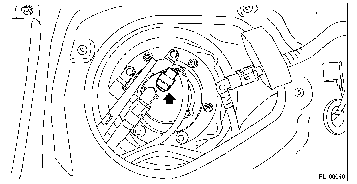 6. Disconnect the connector from the fuel sub level sensor.