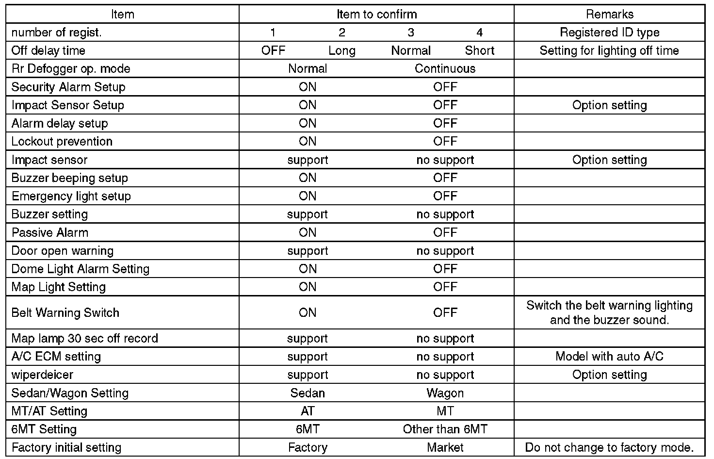 - Be sure not to change Factory initial setting except when installing a new body integrated unit.