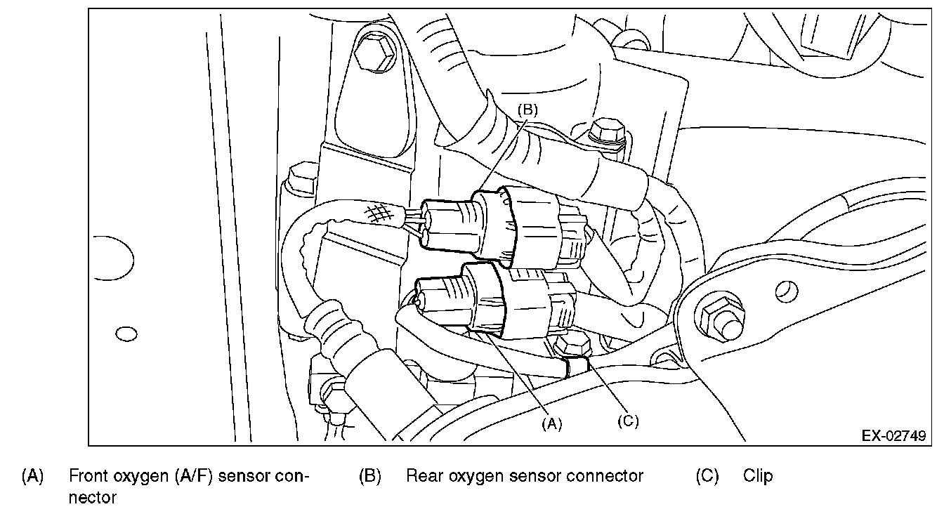 CAUTION: When removing the front oxygen (A/F) sensor, wait until exhaust pipe cools, otherwise it will damage the exhaust pipe.