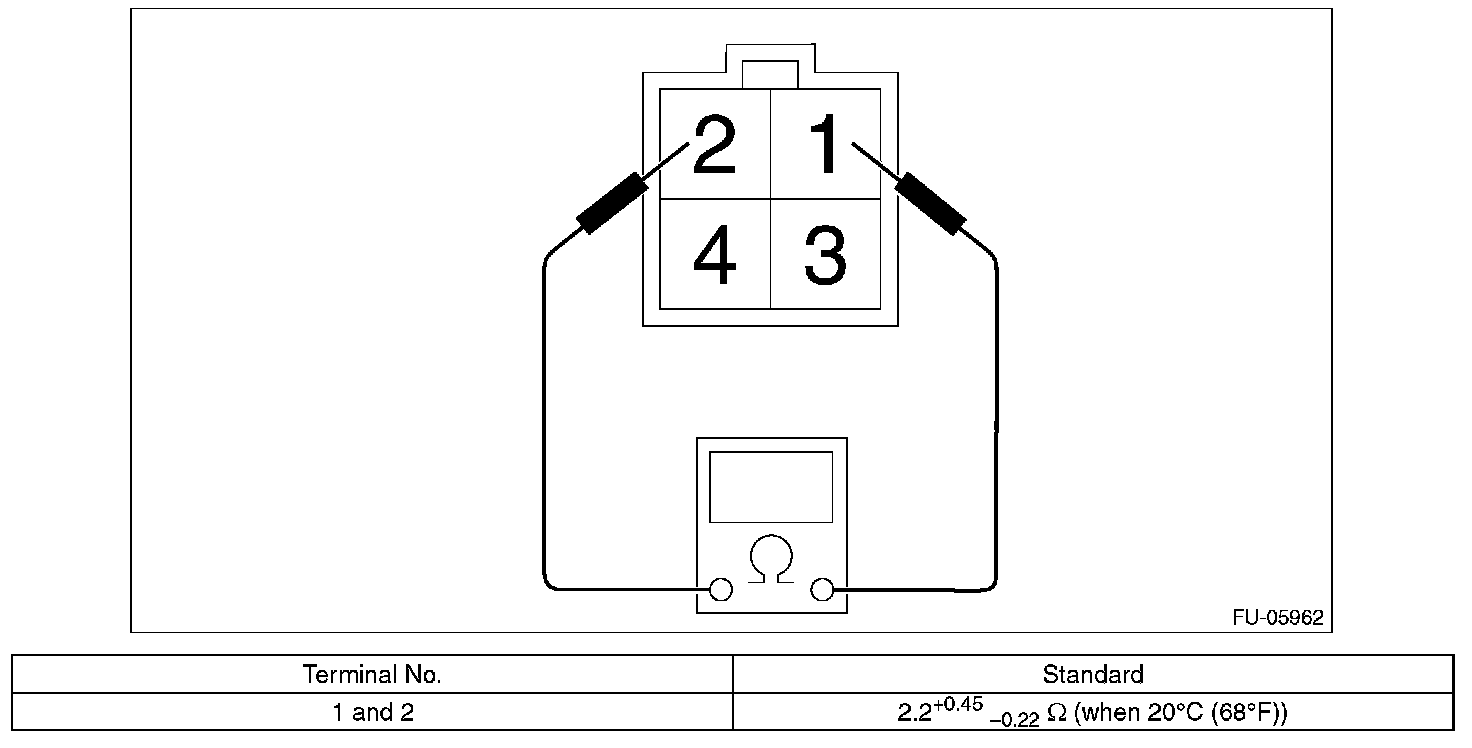 Measure the resistance between front oxygen (A/F) sensor terminals.