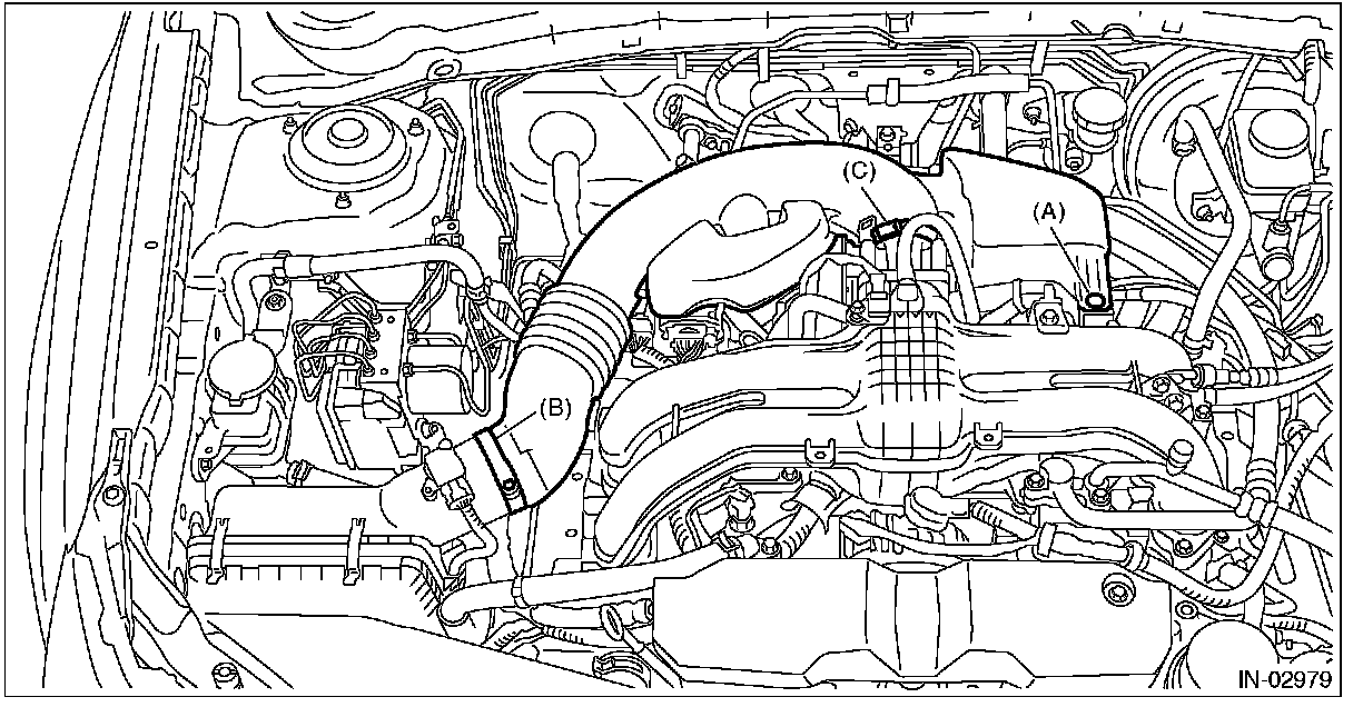 4. Loosen the clamp (C) which connects the air intake boot and throttle body.