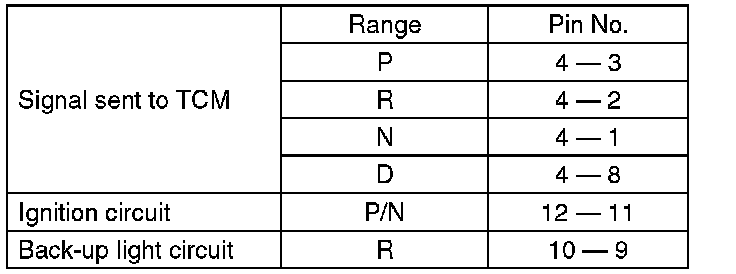 2) Check continuity in inhibitor switch circuits with the select lever moved to each position.