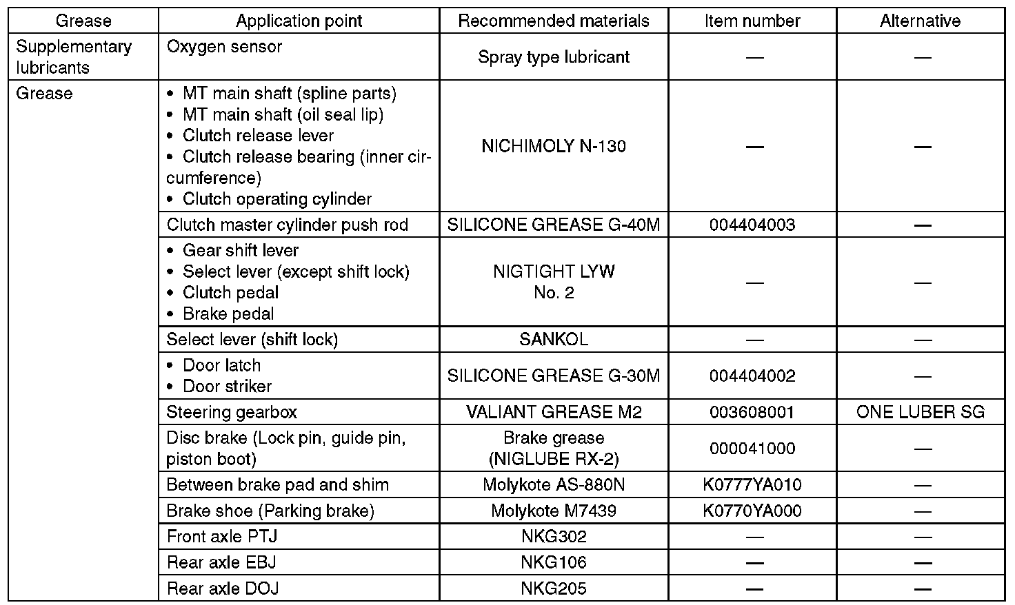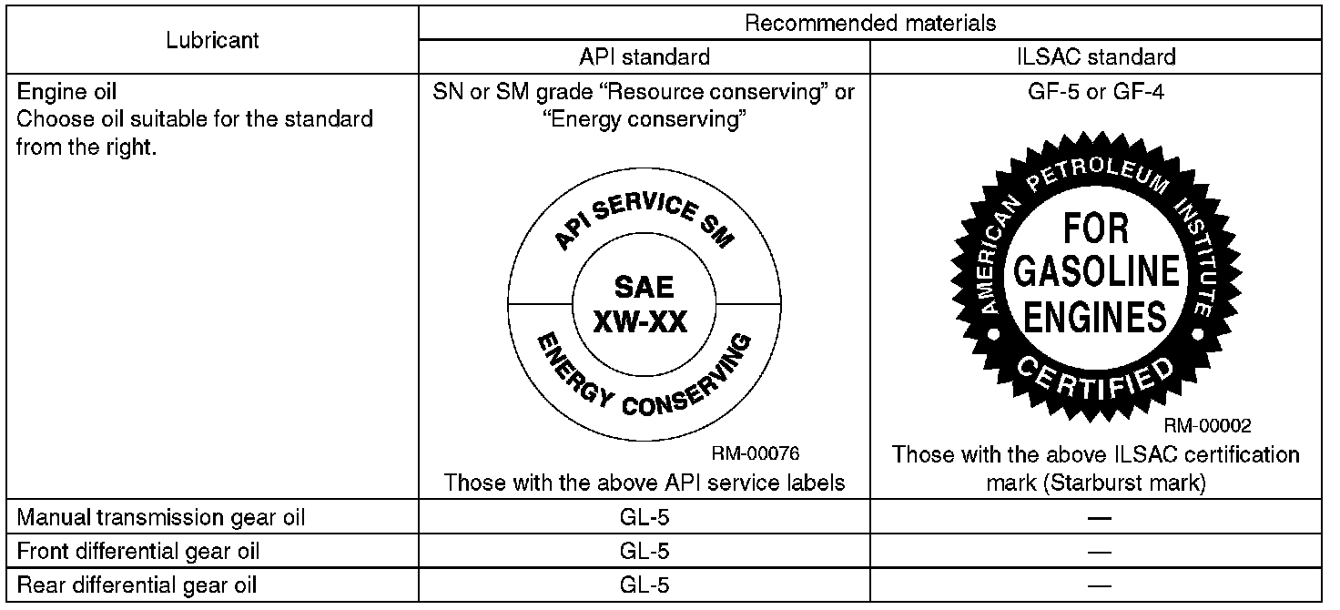 Use the lubricants shown in the table below, or equivalent. See the table below to choose the correct SAE viscosity.