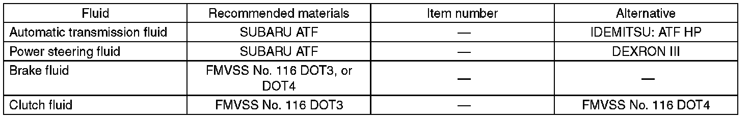 Use the fluids specified in the table below. Do not mix two different kinds or makes of fluid.