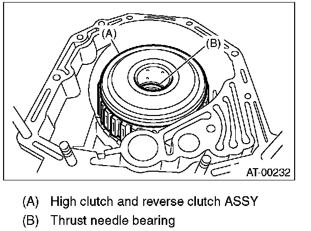 11) Take out the high clutch, thrust needle bearing and reverse clutch assembly.