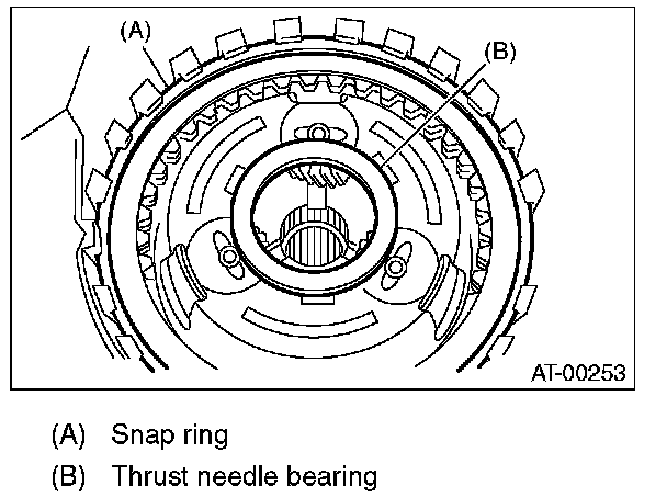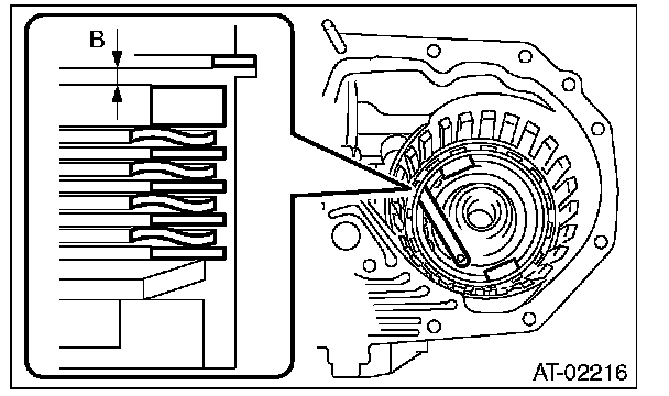 (1) Measure clearance "B" between the retaining plate and snap ring.