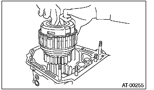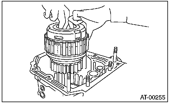 Install carefully while rotating the low clutch and planetary gear assembly slowly, being careful not to damage the seal ring.