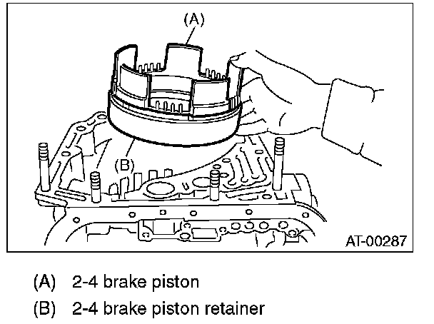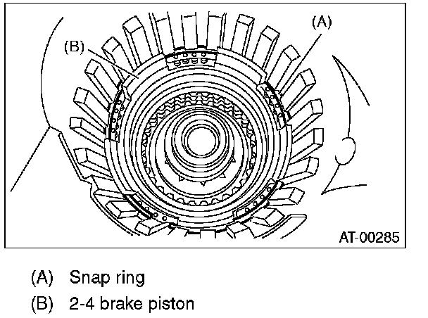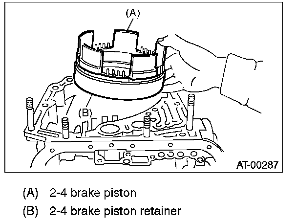 20) Remove the 2-4 brake piston and 2-4 brake piston retainer while taking care not to damage them.