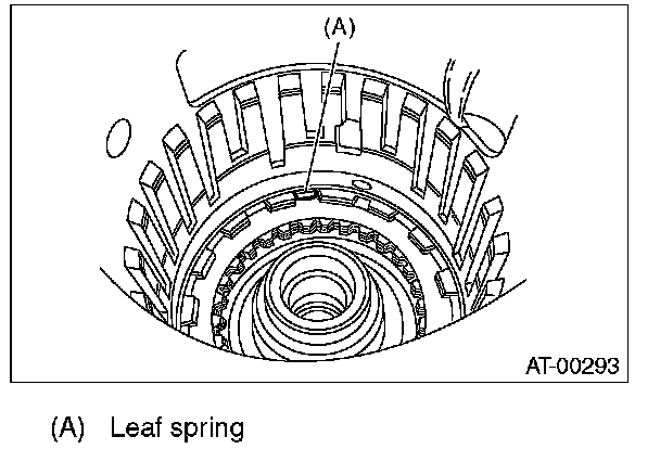 21) Pull out the leaf spring of the low & reverse brake while being careful not to bend it.
