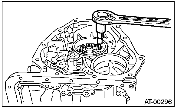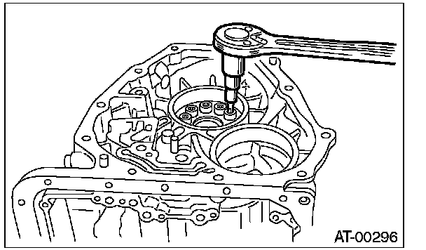 24) Turn the transmission case upside down, and then take out the socket bolts while holding the one-way clutch inner race by hand.