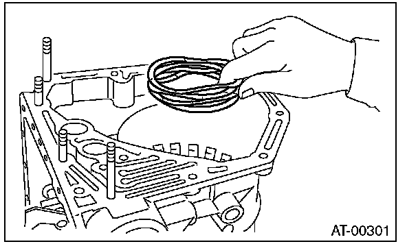 1) Apply ATF to the lip, and install the low & reverse brake piston.