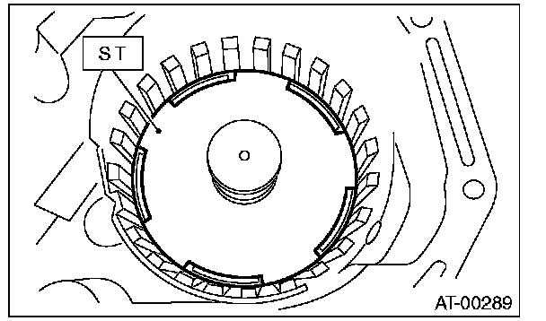 21) Position the snap ring in the transmission. Using ST, press the snap ring into the specified location.