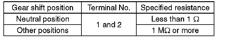 3) Measure the resistance between neutral position switch terminals.