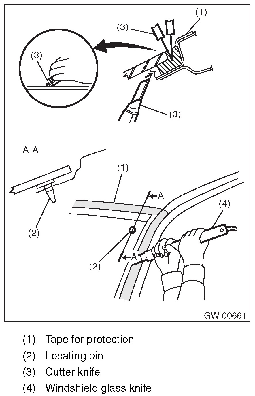 - Cutting of adhesive part shall be started with wider gap between windshield glass and body.