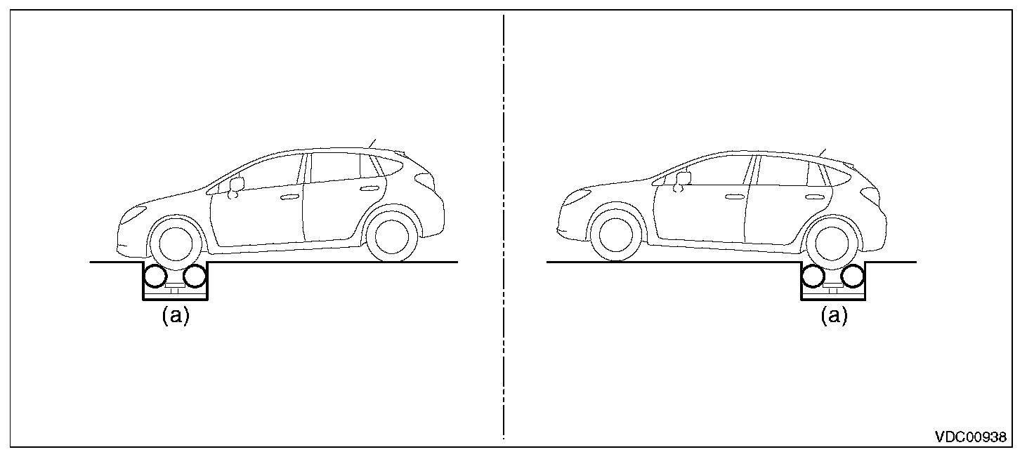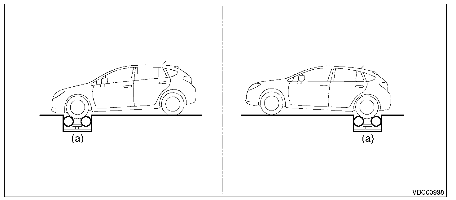 3) Set the front wheels or rear wheels on the brake tester (a) and set the gear to neutral.