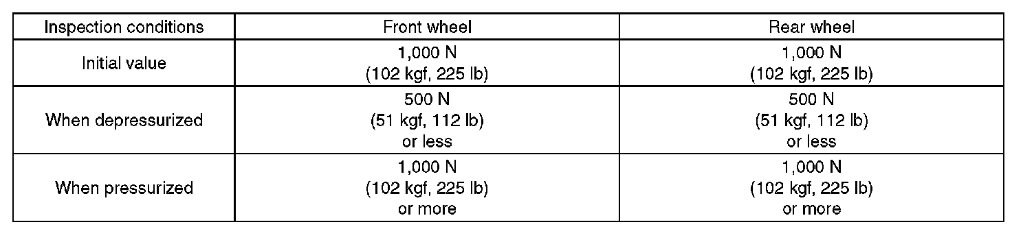 7) Read values indicated on the brake tester and check if the fluctuation of the values between decompression and compression meets specification.